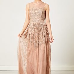 Beige Pink Embellished Boho Maxi Dress with batwing sleeves – this is a beautiful choice if you are looking to create a relaxed boho look.. A beautiful embellished dress with mid-length cape styled sleeves and romantic tulle skirt. This is a perfect choice for your special occasions, pop on some heels and a clutch for the ultimate evening outfit. –
