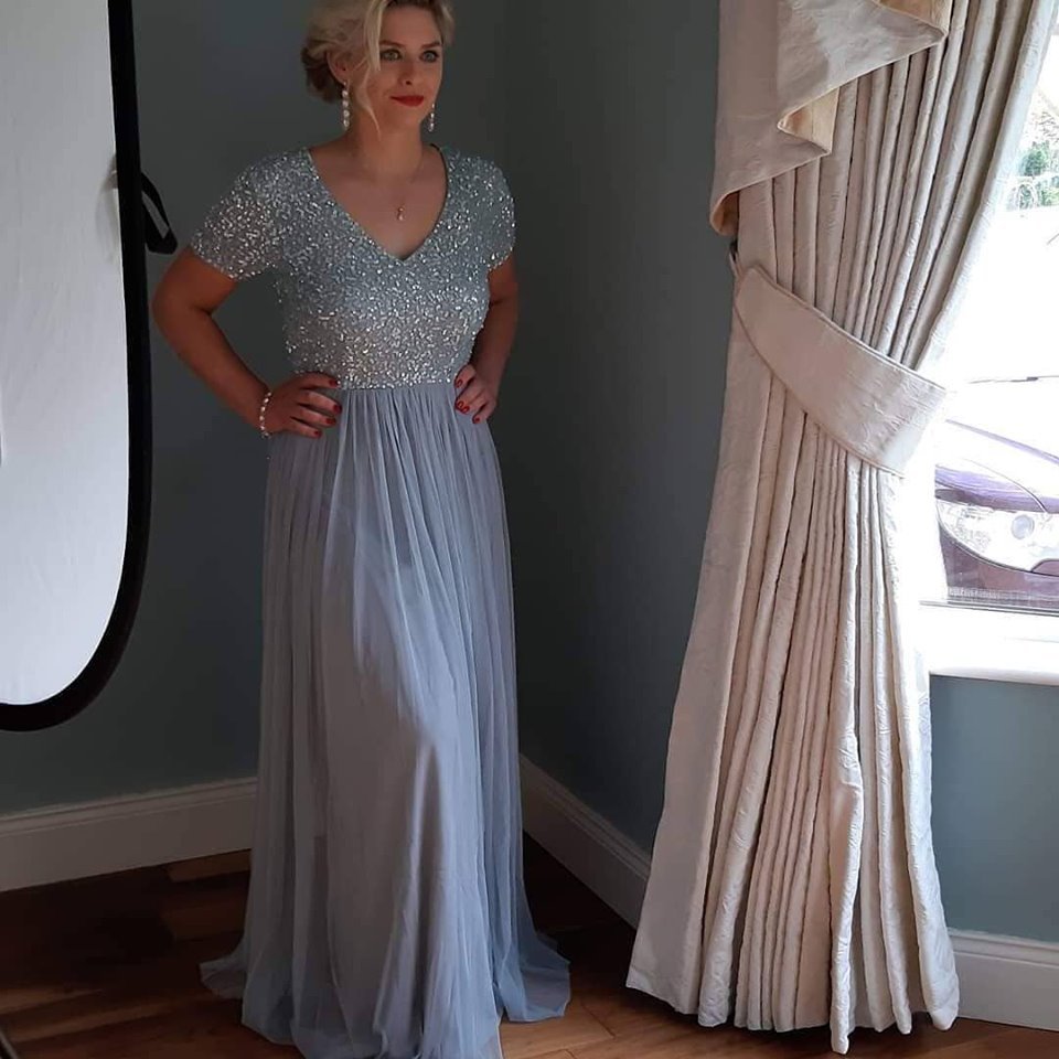 Heather Blue Embellished Maxi Bridesmaid Dress