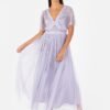 Maya Thistle Lilac Floral Motif Short Sleeve Midi Dress